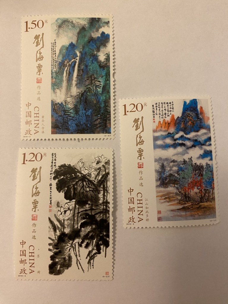 The China postcard had a beautiful, painterly stamp that matched some of the Chinese stamps I already have in my collection.
