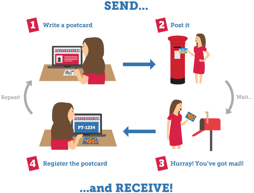 The way it works is simple: you sign up, and the system randomly assigns you someone to send a postcard to.