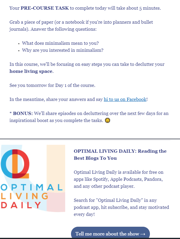 This is the first email I wrote for a welcome sequence on a free minimalism ecourse.